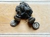Sweet little ceramic skeleton charms by Earthenwood of Michigan are spooky but not scary! Paired with some dyed bone beads and vintage metal beads, the result is a compact and lightweight earring. On hand made niobium hypoallergenic ear wires. Size 2-1/4" in length including ear wires.