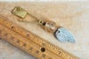 Add some tinsel-y sparkle to your holiday thick sweater or shawl. Vintage laundry marker pin may be too much for fine fabrics, recommend using on heavy woolen sweaters, shawls, or coats. Humblebeads polymer clay leaf and vintage glass. A fun way to spark up your attire or a conversation. Approximately 4.5 inches in length including pin. Lightweight